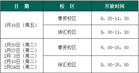 1月17日—2月23日,奉贤校区第三食堂及徐汇校区食堂一楼。2月24日起,所有食堂恢复一般停业。