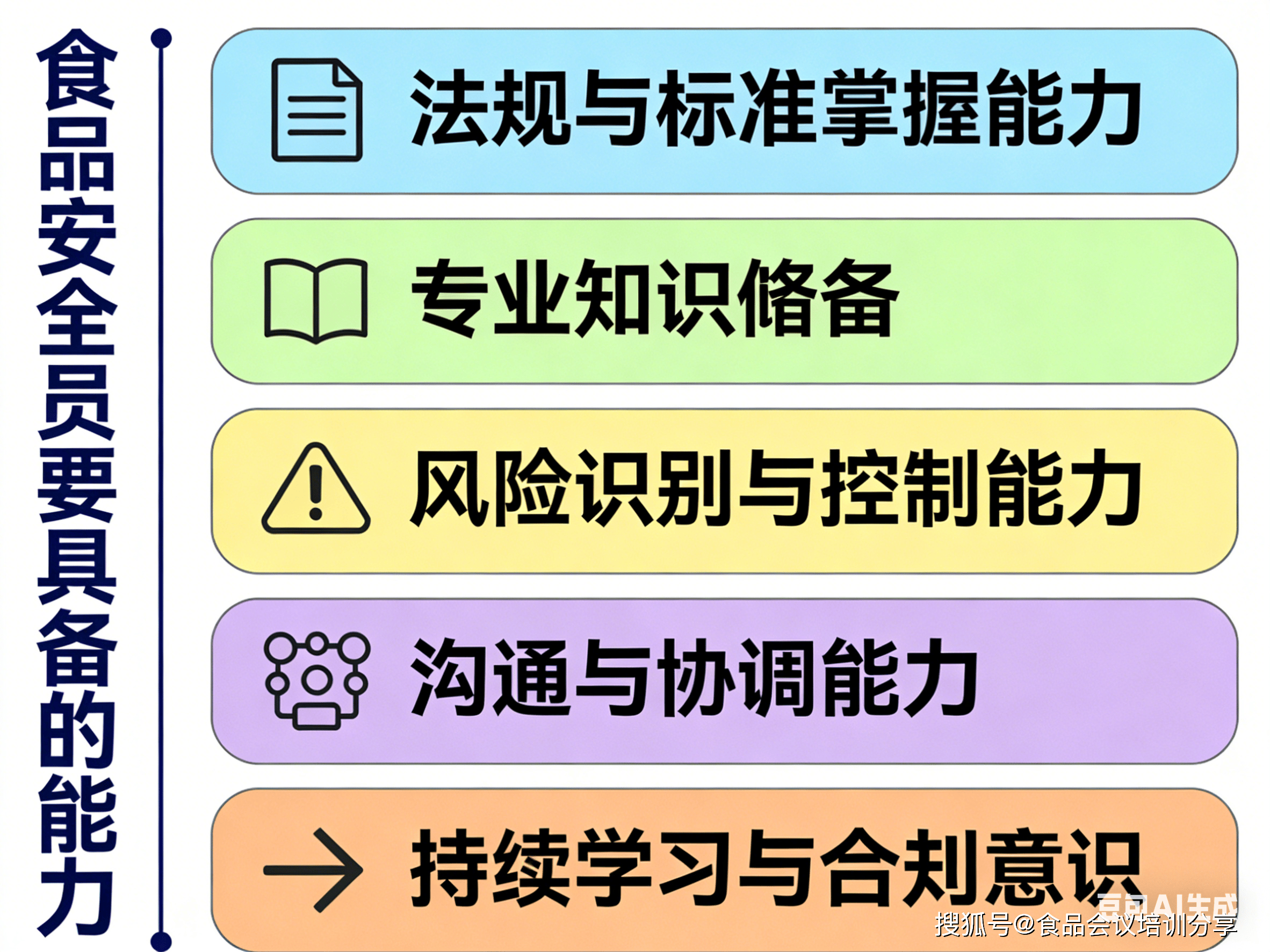 全面控制《中华人平易近国食物平安法》《食物平安法实施条例》《食物出产运营监视查抄办理法子》等焦点律例,明白企业的义务(如 “全过程节制”“从体义务”)及违法后果(罚款、吊销许可、刑事义务等)。熟练使用食物平安国度尺度(GB 系列),包罗原料平安尺度(如 GB 2762 污染物限量、GB 2763 农药残留)、出产卫生尺度(如 GB 14881 食物出产通用卫生规范)、确保出产全流程合适尺度要求。控制食物微生物学(如致病菌污染风险、菌落总数节制)、食物化学(如沉金属、添加剂、兽药残留等化学风险)、食物工艺学(如热加工、冷藏、包拆等环节的平安节制点)等焦点学问,能识别分歧食物品类(如生鲜、罐头、烘焙)的特有风险。熟悉 HACCP(风险阐发取环节节制点)、ISO 22000 食物平安办理系统、SSOP(卫生尺度操做法式)等系统的焦点逻辑,能理解 “风险防止”“过程节制” 而非 “结尾查验” 的办理。出产过程放哨、成品查验等环节,识别生物风险(如沙门氏菌、霉菌)、化学风险(如不法添加剂、农残超标)、物理风险(如金属异物、玻璃碎片)及工艺风险(如杀菌不完全、冷链断链)。能针对识此外风险采纳立即办法(如暂停出产、隔离问题原料),并鞭策落实改正防止办法(如优化清洗流程、升级检测频次)。能取出产、采购、研发、发卖等部分无效对接(如向采购部分明白原料验收尺度,向出产部分强调环节节制点操做规范),确保食物平安要求贯穿全链条。能共同监管部分的查抄(供给记实、注释流程),取供应商沟通质量要求,或向消费者解答根本食物平安问题。关心律例取尺度更新(如国度卫健委发布的新国标、市场监管总局的监管动态),自动加入行业培训(如 HACCP 内审员、食物平安办理员证书培训),确保办理方式取行业要求同步。具备 “零” 的合规认识,明白食物安满是企业底线,杜绝 “侥幸心理” 或 “成本优先” 的违规操做。感乐趣的记得留言哦。食物会议培训核心,分享食物行业会议培训动态,充实满脚您的进修需求。前往搜狐,查看更多。